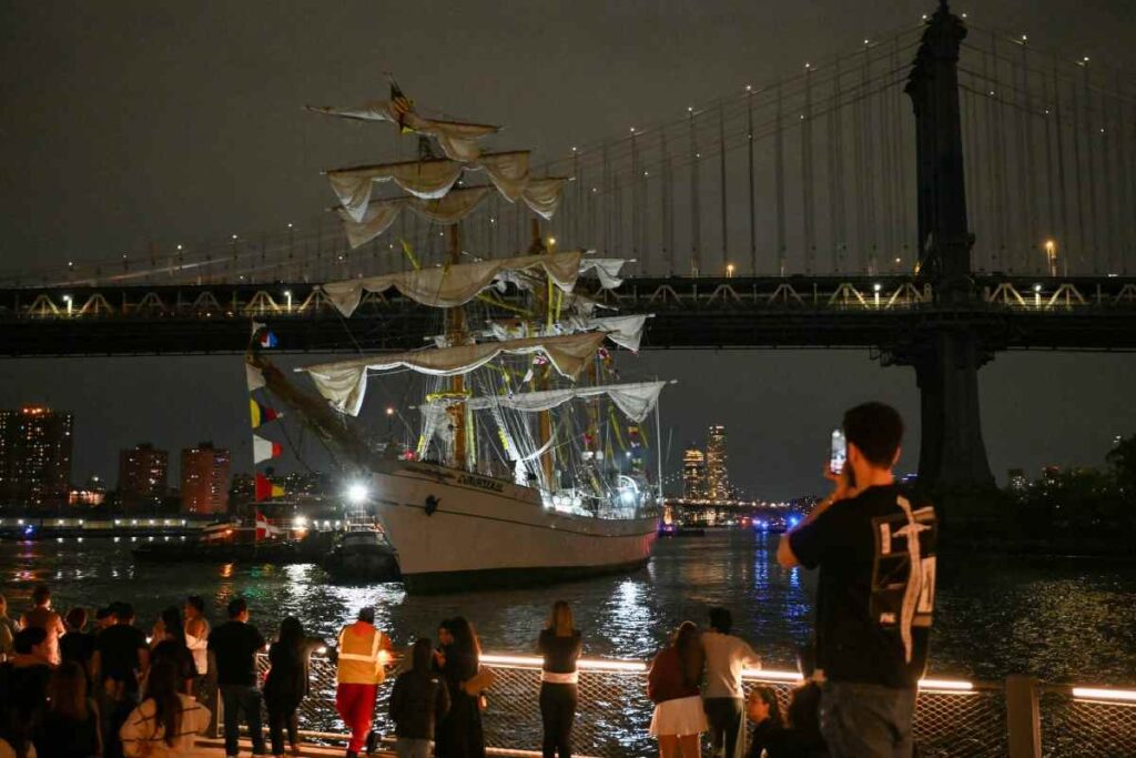 El buque escuela Cuauhtémoc zarpó el sábado en Nueva York con la ayuda de un remolcador. Apenas cuatro minutos después, la tripulación pidió ayuda tres veces porque tuvieron problemas para maniobrar. El mástil del barco chocó contra la parte baja del puente de Brooklyn, lo que causó el incidente y la rápida intervención de la policía y bomberos.